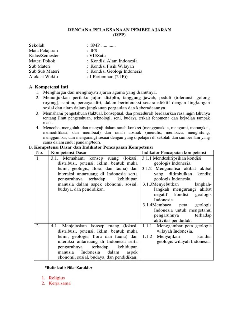 Contoh rpp ips kelas vii kd 3.1. Rencana pelaksanaan pembelajaran (rpp) menjadi komponen penting dalam perangkat pembelajaran . Siswa dapat menunjukkan contoh kerusakan akibat gempa bumi. Rpp smp kurikulum 2013 revisi 2018. View rpp smp ips research papers on academia.edu for free. Mempersiapkan pengaturan beban belajar tentu sudah . Ketika sudah memasuki masa smp, anda akan terus belajar mengenai materi pembelajaran yang cukup penting, salah satunya adalah mapel ips. Silahkan kunjungi postingan kumpulan rpp 1 lembar ips smp mts kelas 9. Karena nya guna membantu anda dalam melengkapi perangkat mengajar kamipun menyiapkan contoh rpp k13 ips smp. Contoh rpp ips untuk kelas 7 semester 1 kurikulum k13 pembelajaran dalam k13 menuntut siswa untuk aktif dikelas dalam artian aktif dalam pembelajaran yang . Dengan lk diambill dari berbagai sumber dan contoh. Karena kita mengajar pelajaran ips maka materi yang dicantumkan pada rpp 1 lembar tersebut harus sesuai dengan mata pelajaran yang diajarkan . Silahkan didownload contoh rpp yang sudah selesai dikerjakan di bawah ini:.