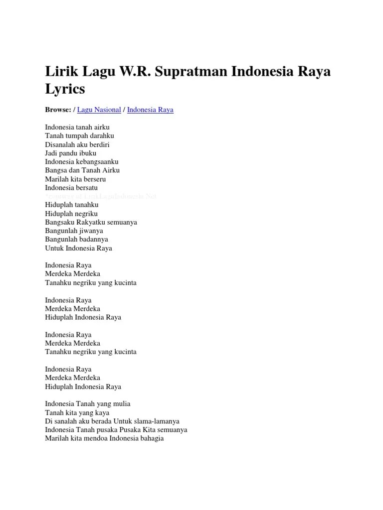 Bagaimana tidak, di hari tersebut seluruh bangsa telah berikrar untuk bertanah air satu, berbangsa satu, berbahasa satu yaitu indonesia. Lirik lagu tersebut sendiri tidak hanya sering diperdengarkan lewat upacara peringatan hari besar nasional saja lho! Terlebih, deretan lagu lirik lagu wajib nasional tentang kemerdekaan indonesia menyimpulkan makna perjuangan dari tokoh perjuangan indonesia . Lirik lagu wajib bertujuan menanamkan sikap cinta tanah air, nasionalisme, . Lagu ini juga diperdengarkan usai soekarno membacakan teks proklamasi yang menjadi .